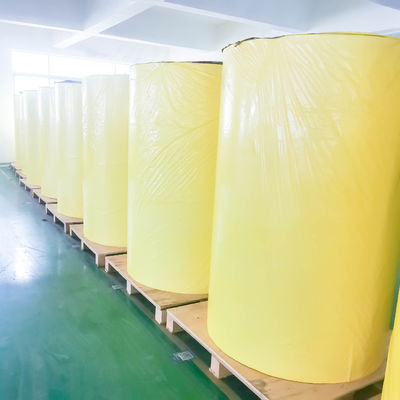 Warna Kuning yang Meriah:Gulung besar ini dilengkapi dengan perekat akrilik kuning yang menarik, menambah sentuhan vitalitas dan keunikan pada label Anda.Kombinasi film BOPP transparan dan perekat kuning menciptakan label yang baik secara visual dan khas.